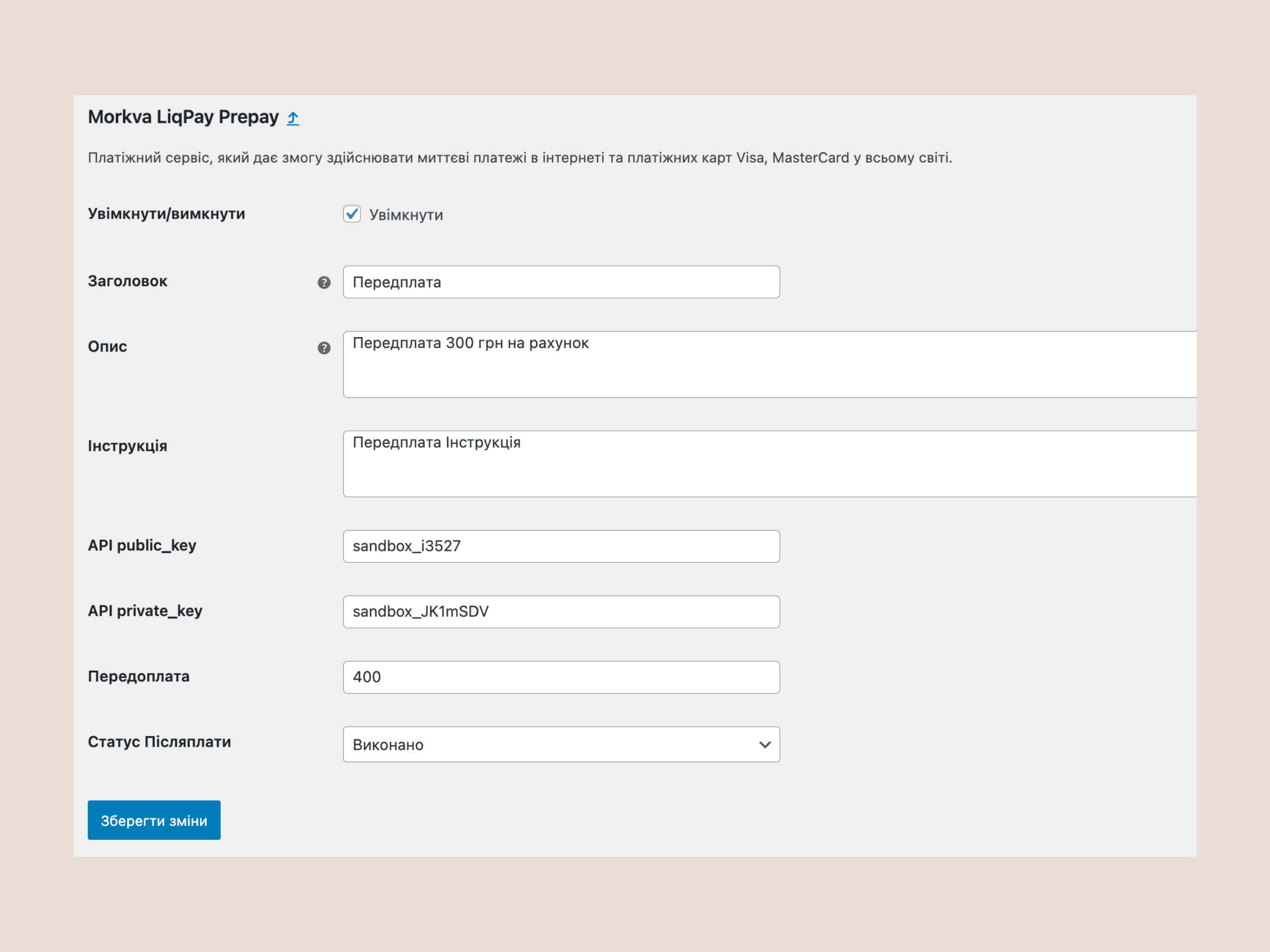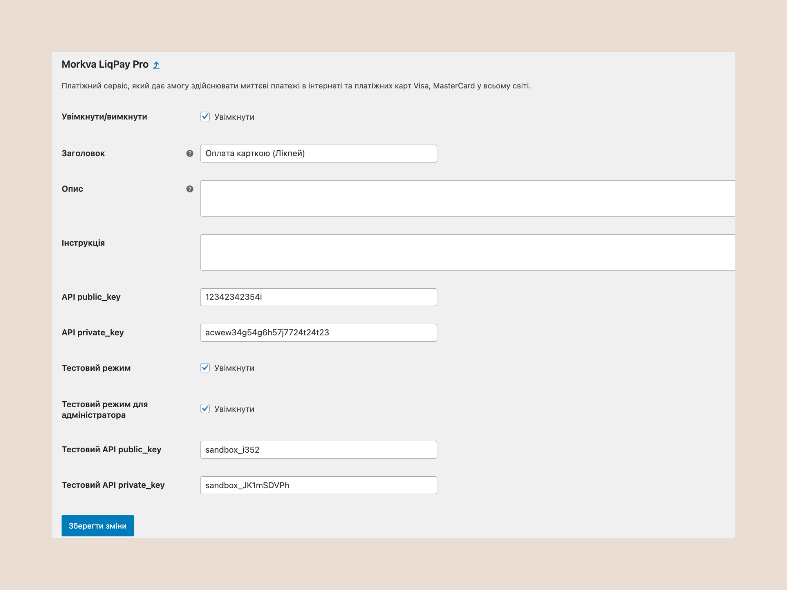 Тестуйте прийом оплат навіть на працюючому сайті з тестовим режимом лише для адміністраторів.